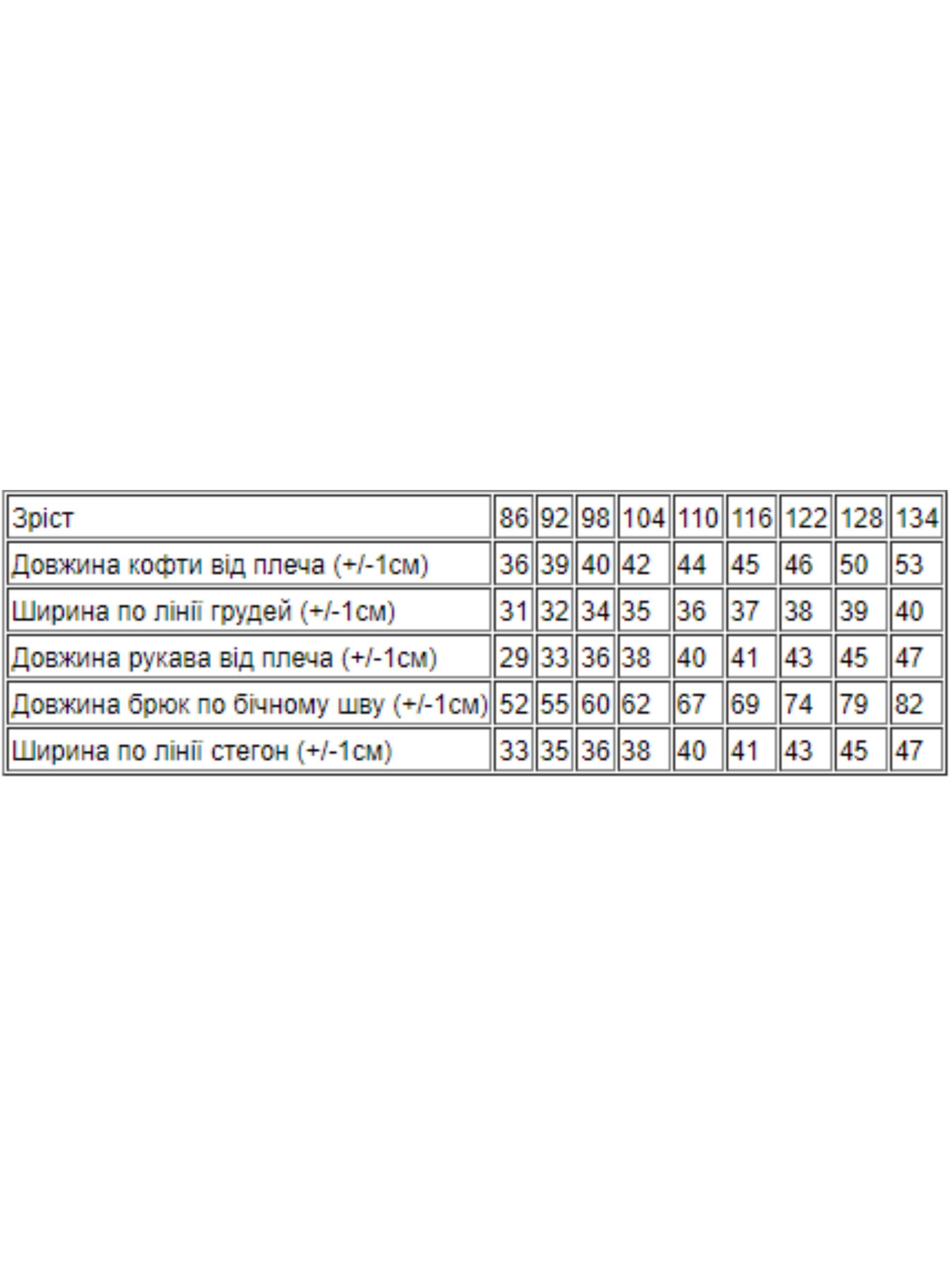 Полотно: начос однотонний Склад полотна: 100% бавовна Зріст: 86-104 У дитячий спортивний костюм входять: кофта та штани. Модель виконана з однотонного начоса. Полотно сідає при пранні по довжині на 1-2 см. Рекомендується прати при температурі не більше 30 градусів. Кофта з капюшоном на блискавці доповнена декоративним шнурком. Штани на гумці яка добре тягнеться також для зручності присутні кишені. На рукавах знизу кофти і штанів стрейчеві манжети. Костюм прикрашений барвистим і якісним накатом. Модель ідеально підійде для прогулянок занять спортом.