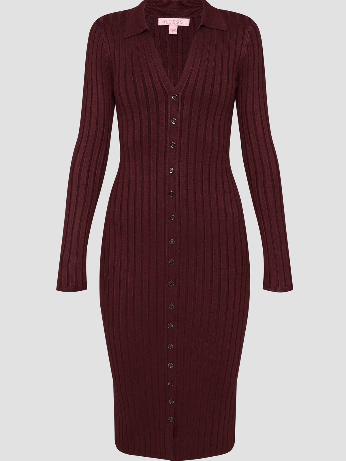 Жіноча Сукня міді GUESS (W5BK60.Z2YJ2-G1G5) колір бордовий, матеріал віскоза