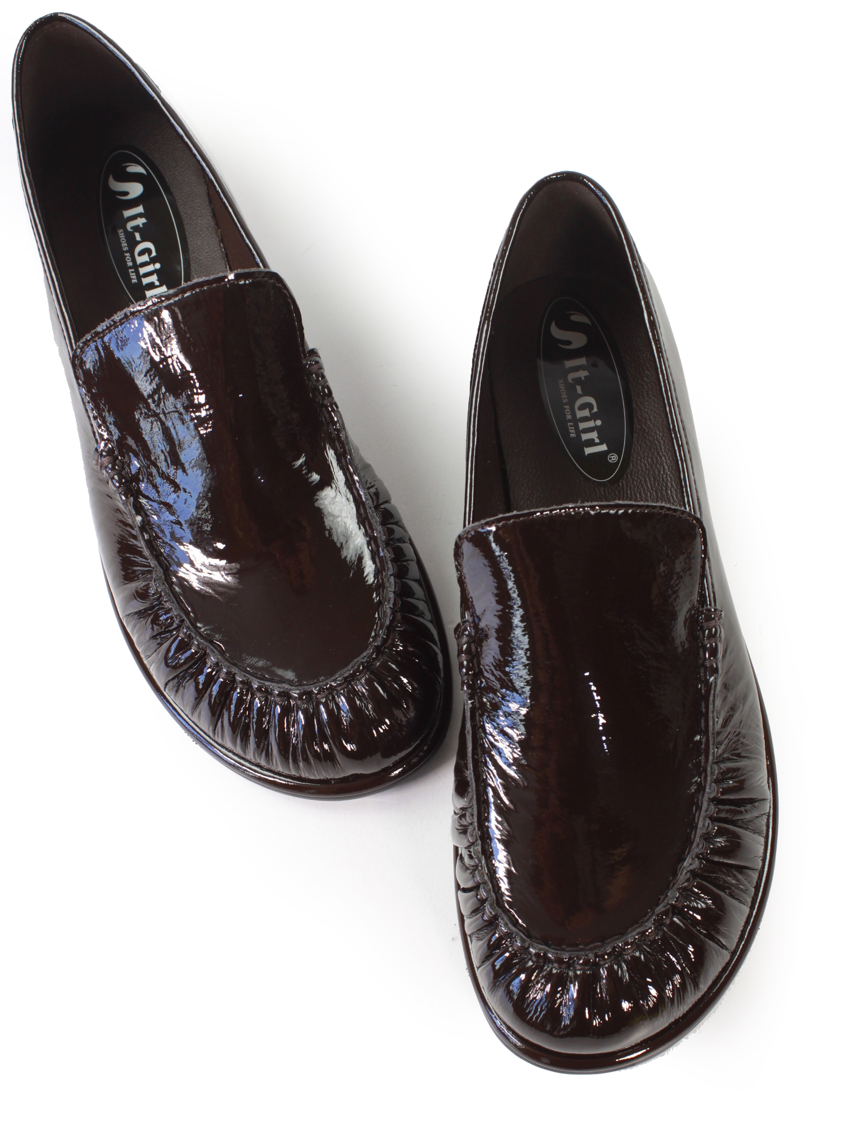 Жіночі Лофери It-girl (23-L05-3) колір темно-коричневий, матеріал лакова натуральна шкіра